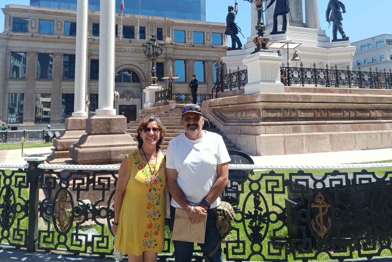 Du starter turen i det historiske centrum af Valparaíso, hvor du går gennem de brostensbelagte og farverige gader omgivet af gadekunst og arkitektur, der er en del af byens kulturarv. Du besøger ikoniske pladser som Plaza Sotomayor, hvor Monumento a los Héroes de Iquique (monumentet til heltene fra Iquique) står og giver et indblik i Chiles søfartshistorie.