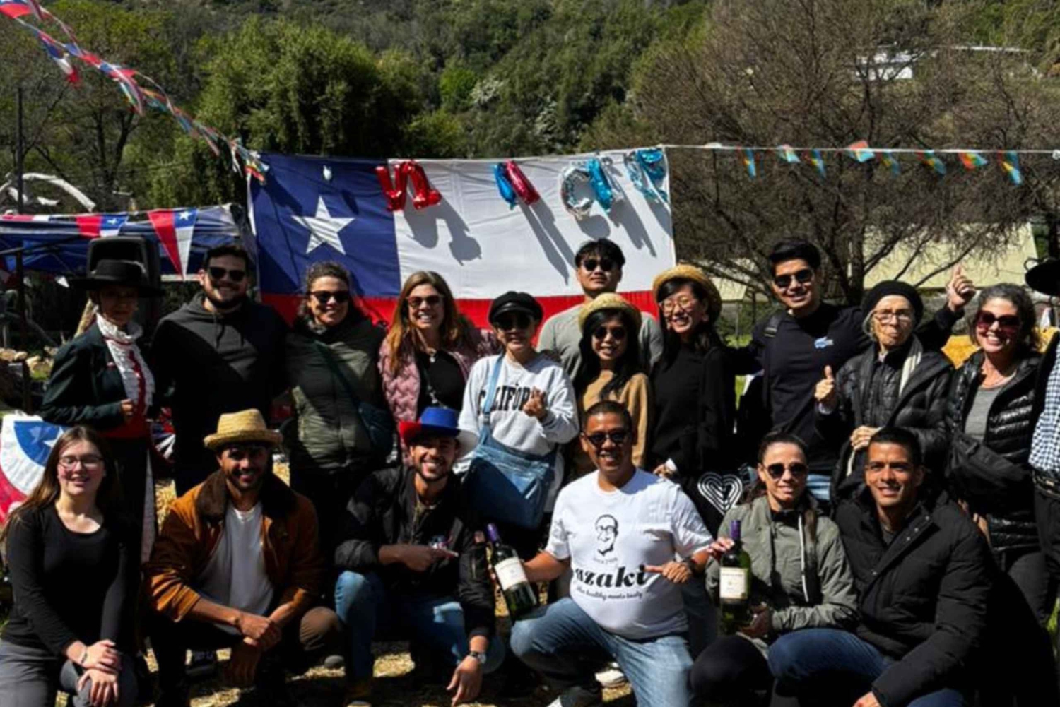 Inkluderer: Transport, passagerforsikring, tresproget guide (portugisisk, engelsk og spansk), picnic med vin og snacks, Fiesta de la Chilenidad.