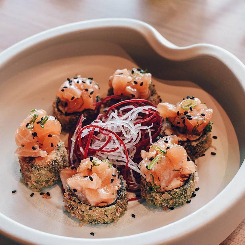 Ved at kombinere thailandsk, japansk og kinesisk køkken er menuen en hybrid af asiatiske påvirkninger og smagsvarianter. I de sikre hænder på Chef Cyrus Watanabe, af japansk afstamning, kan du smage de eksotiske stilarter og krydderier, der stammer fra hvert land, hvilket tager dig med på en tur gennem Asiens berygtede køkken. Der er thailandske kammuslinger, traditionel peruansk mad, kød, sushi og teriyaki-retter. Til at ledsage dit måltid kan du vælge imellem søde og sjove cocktails eller endda den traditionelle sake med den afslappende lyd af delikat, klingende vand fra vægfountainen.
