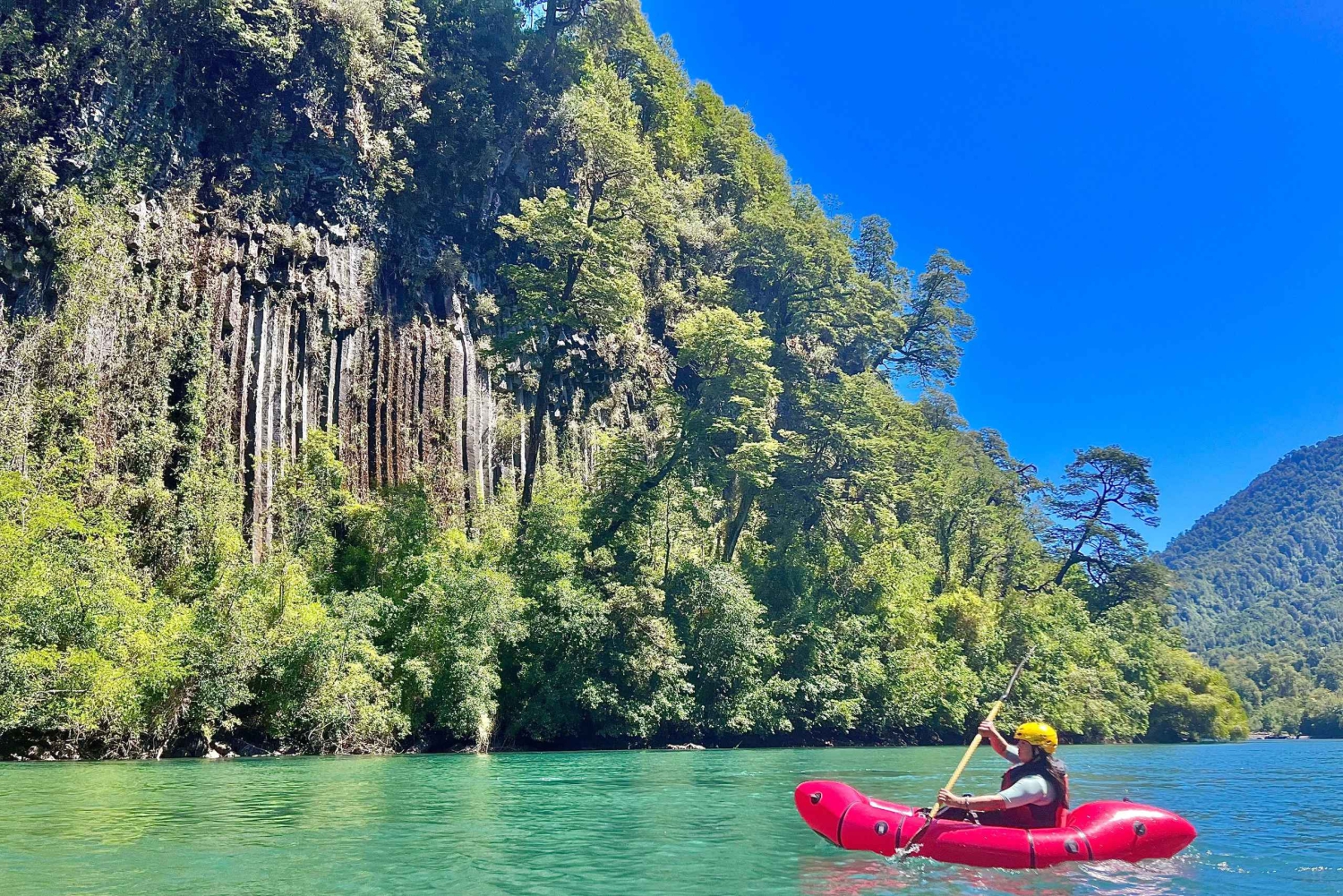 Begib dich auf ein Abenteuer mit einem aufblasbaren Kajak auf dem majestätischen Fluss Petrohue; der Lehrer zeigt dir die grundlegenden Paddeltechniken für eine lustige und sichere Fahrt!
