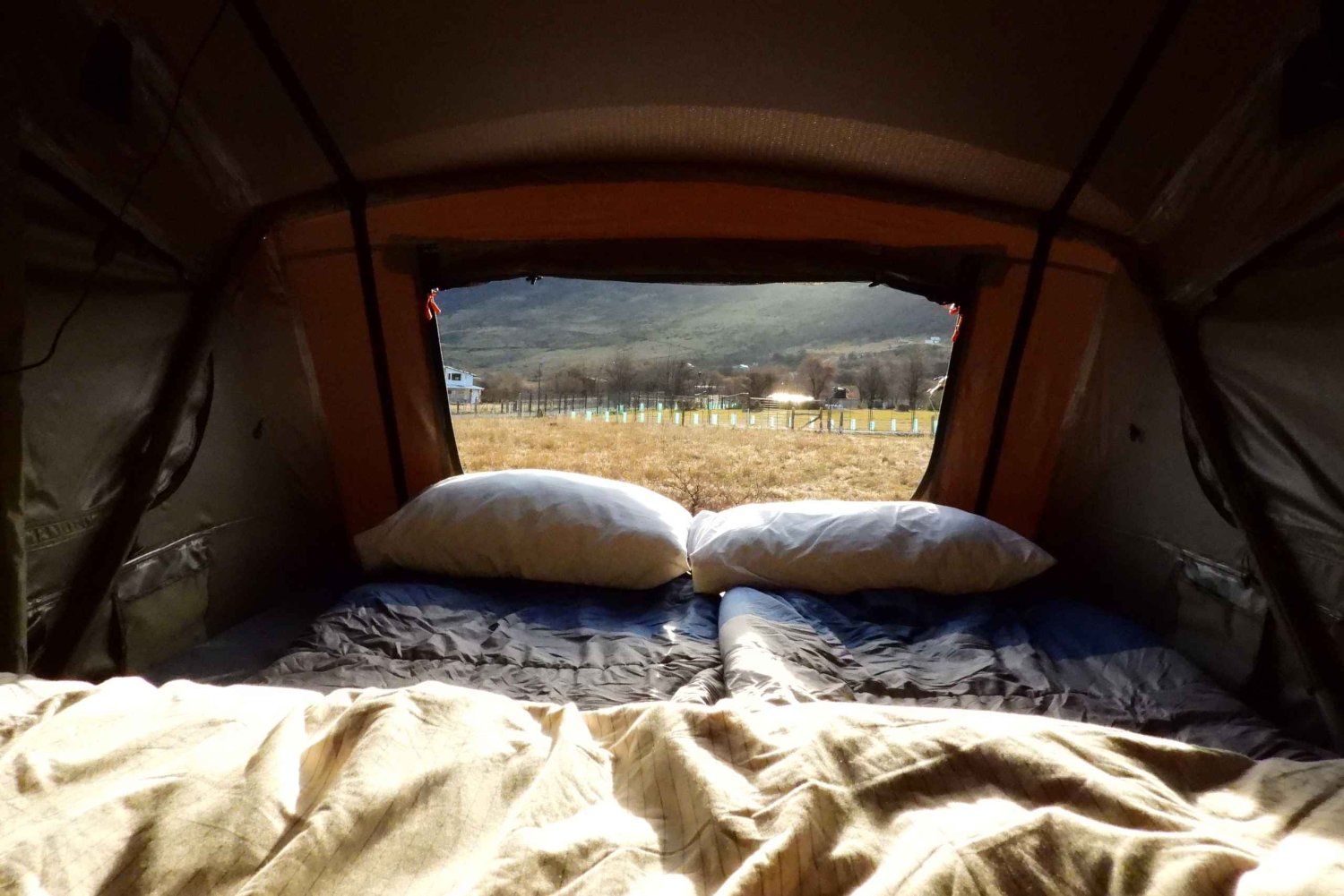 Jede Station verfügt über ein hochwertiges Dachzelt, ausgestattet mit gepolsterten Thermomatten, hochwertiger Isolierung und funktionalem Raum zum Ausruhen, zum Organisieren deiner Ausrüstung und zum Vorbereiten auf jeden Tag des Trekkings. Dank unseres Solarenergiesystems hast du auch Zugang zu Satelliten-WLAN, um deine Erfahrungen zu teilen oder bei Bedarf mit der Außenwelt in Verbindung zu bleiben.