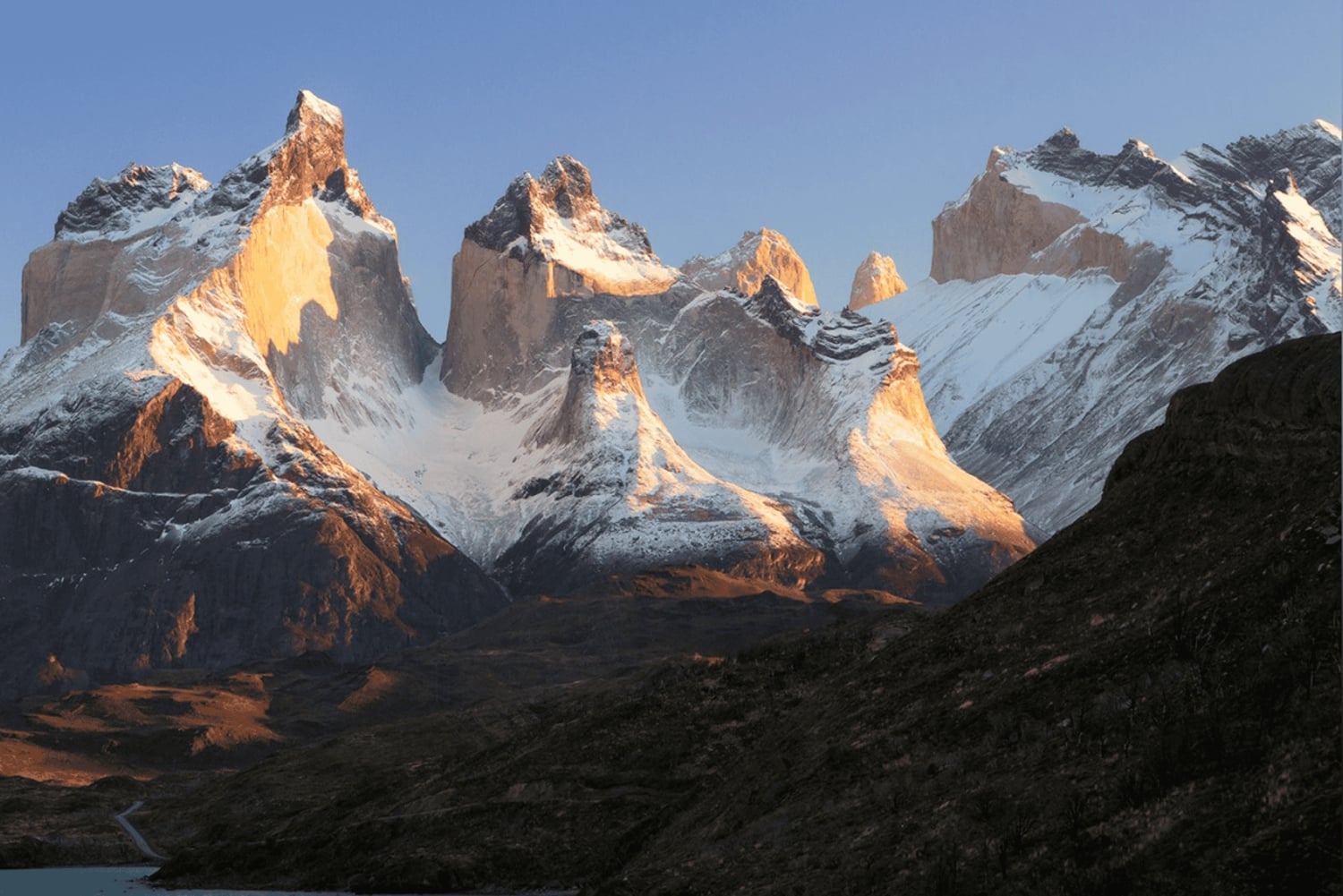 Wir setzen unseren Weg fort und genießen die atemberaubende Aussicht auf die Lagune Sofia, den Porteño-See, die Cordillera Prat, den Cerro Mesa, die Sierra del Toro und die Sierra Ballena. Nach einer 2-stündigen Fahrt erreichen wir den Aussichtspunkt des Lago del Toro. Von dort aus haben wir einen spektakulären Blick auf den See und die Cordillera Paine, auch bekannt als Macizo Paine.