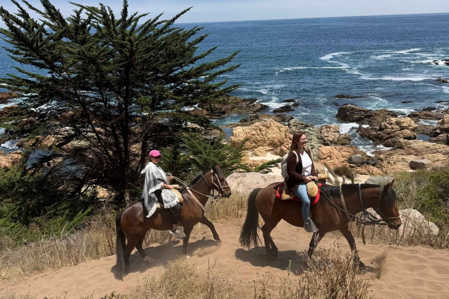 Das Erlebnis geht weiter mit einem geführten Ausritt entlang der Küste am Playa Los Lilenes. Nach einer kurzen Sicherheitseinweisung und der Anpassung der Ausrüstung reitest du in entspanntem Tempo auf sanften Pferden auf Küstenpfaden entlang und genießt den Blick auf das offene Meer und die friedliche Küstenatmosphäre. Der Ausritt ist für Anfänger geeignet und bietet mehrere Fotomöglichkeiten, bevor du zum Ausgangspunkt zurückkehrst und einen unvergesslichen Tag am Pazifik abschließt.