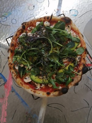 Die Pizzen und die fermentierten Brotbrötchen mit großem Teig und die integralen Empanadas zeichnen sich für ein leckereres Mittagessen aus, begleitet von den schönen Bäumen, die sie umgeben. In den Abendstunden wird ein guter Ganzbohnenkaffee zusammen mit mehreren süßen Köstlichkeiten auf der Speisekarte empfohlen.