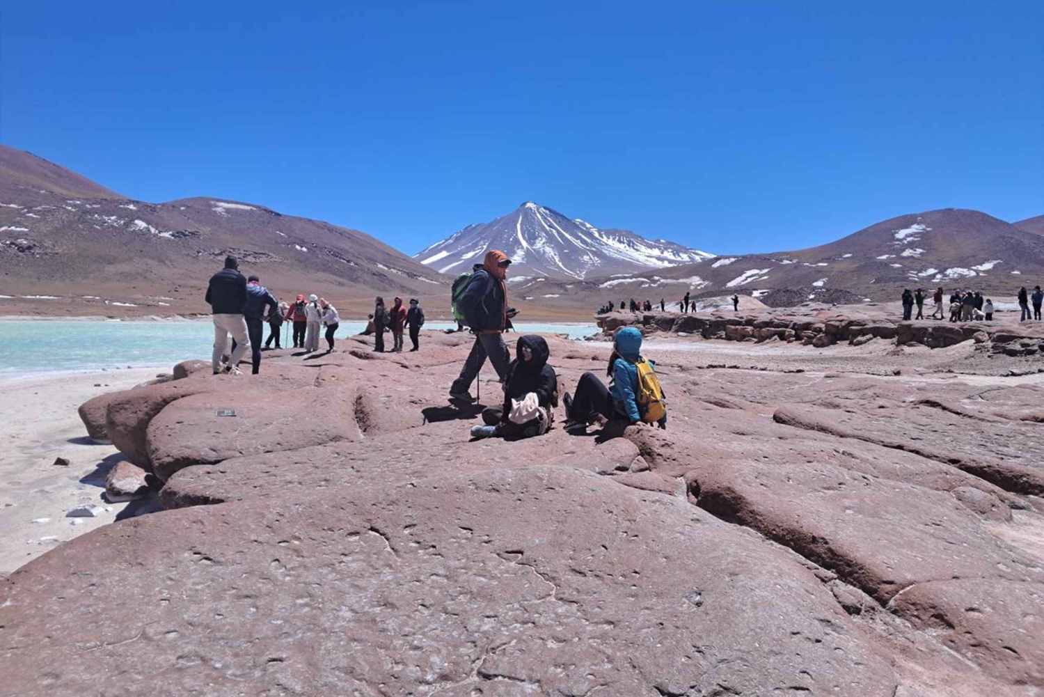 Be collected from your accommodation in San Pedro de Atacama around 06:00 - 6:30 AM. Your first stop, after an hour, will be at the Miscanti and Miñiques highland lagoons, located at 4,200 meters above sea level. In these lagoons, enjoy breakfast and admire the fauna and flora here.  The next visit is to the Salar de Talar, known as Piedras Rojas or purple stones. The beauty of this place will leave you speechless. Continue to your next stop at the Atacameño village of Socaire, where you can observe the terraces of cultivation and the village church. Then visit the Salar de Atacama, Chile's largest salt lake. Here are the national flamingo reserve and the Chaxa lagoon, which is home to three types of flamingos as well as other species. Return to San Pedro de Atacama around 4:00 PM.