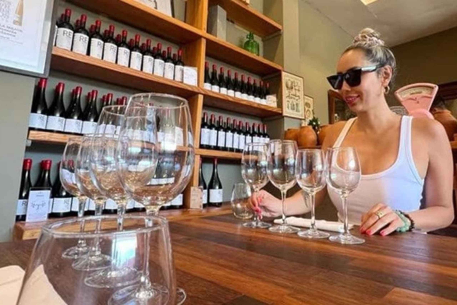 Your first stop is Bodegas RE, a boutique winery renowned for blending ancestral winemaking traditions with bold innovation. Explore their unique underground cellar, where ancient clay amphorae rest beside oak barrels, symbolizing the harmony between past and present. Learn about the winery’s “RE” philosophy reinvent, recreate, and revive as you dive into their creative process. The visit includes a guided tasting of four exceptional wines: Pinotel (Pinot Noir + Muscat), Chardonnoir (Chardonnay + Pinot Noir), Parras Ancestrales (from century-old vines), and Cabergnan (Cabernet Sauvignon + Carignan). Each wine is thoughtfully paired with a gourmet platter of fresh-baked bread, local olives, artisanal cheeses, charcuterie, and house-made balsamic olive oil.