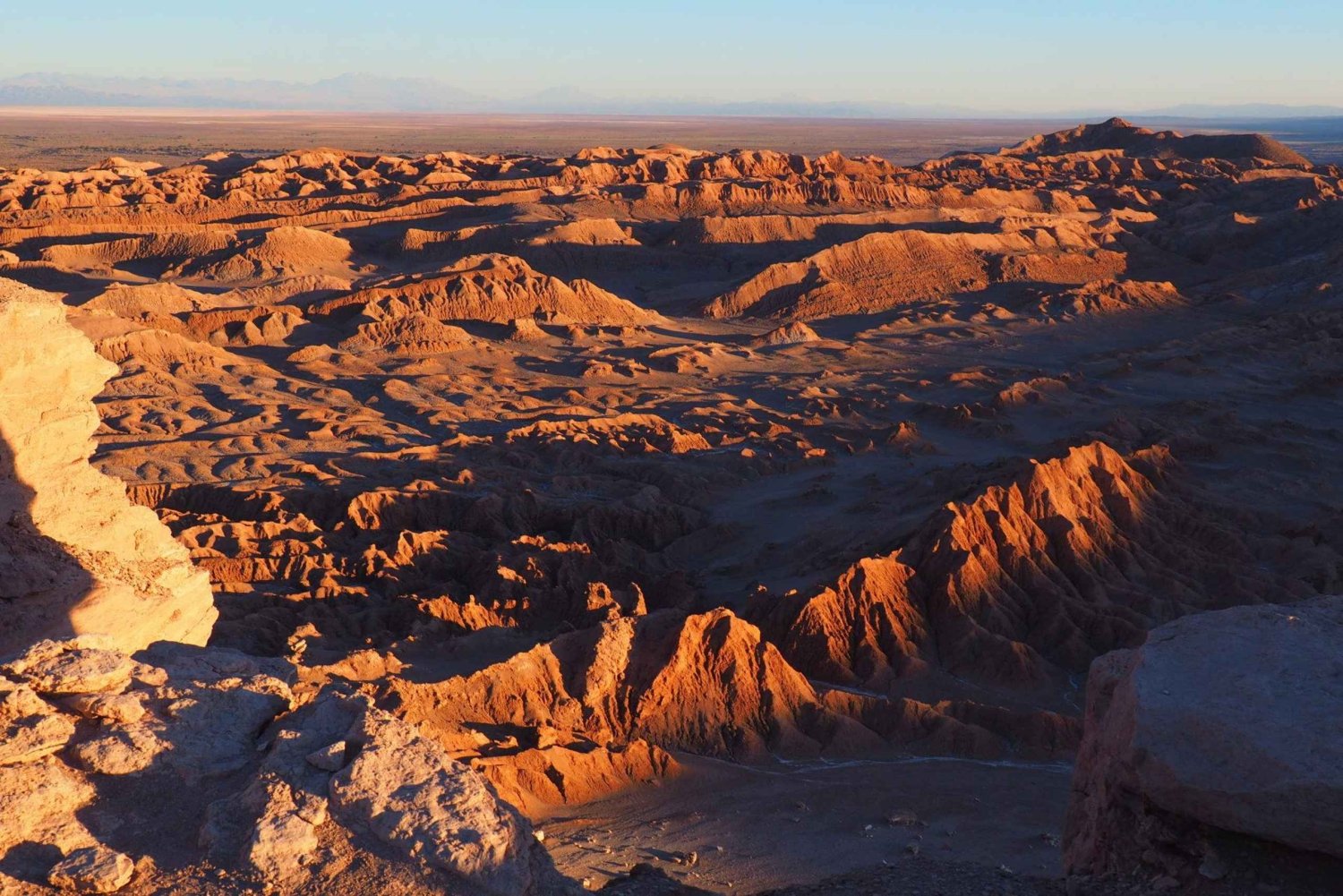 At the end of the day, admire the sunset from an exceptional viewpoint overlooking the valley. Enjoy a panoramic view of the rugged beauty of the Atacama Desert and see the beautiful colors of the sky as the sun gradually sets.