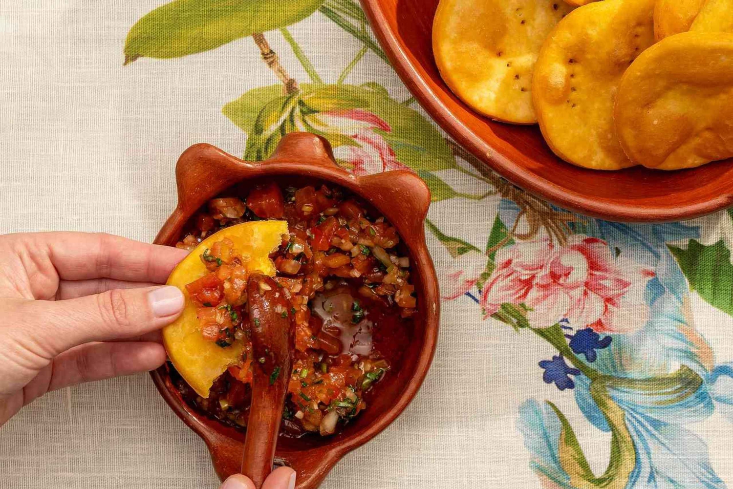 Kokin lämpimän ohjauksen alla maistelet tyypillisiä ruokia, joista jokainen edustaa osaa chileläistä kulttuuria: Paikallisia ja perinteisiä juomia rajattomasti Pieniä alkupaloja, jotka ovat täynnä tuoreita, yksinkertaisia ainesosia Runsas pieniä annoksia, jotka esittelevät kotiruokaa Kaksi makeaa jälkiruokaa, jotka viimeistelevät makuelämyksen