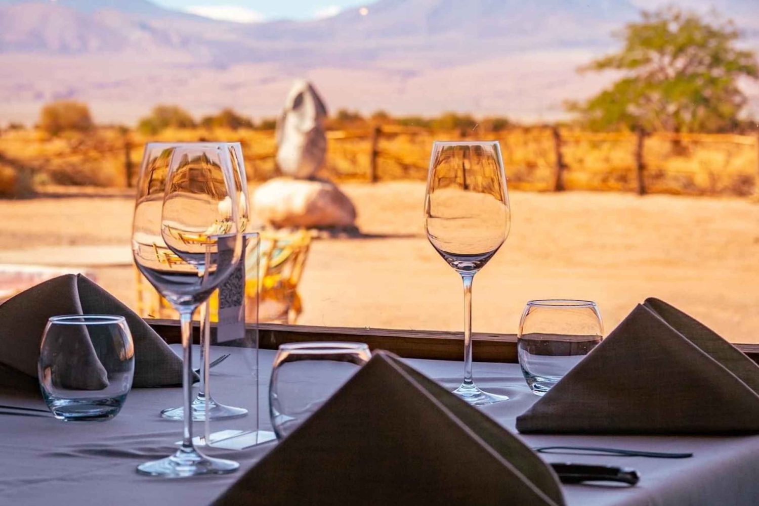 Menu degustazione di 5 portate ispirato a ingredienti e ricette della cultura Atacameña. Include un menu degustazione di 5 portate e un abbinamento di 3 bevande. Include il transfer di andata e ritorno.