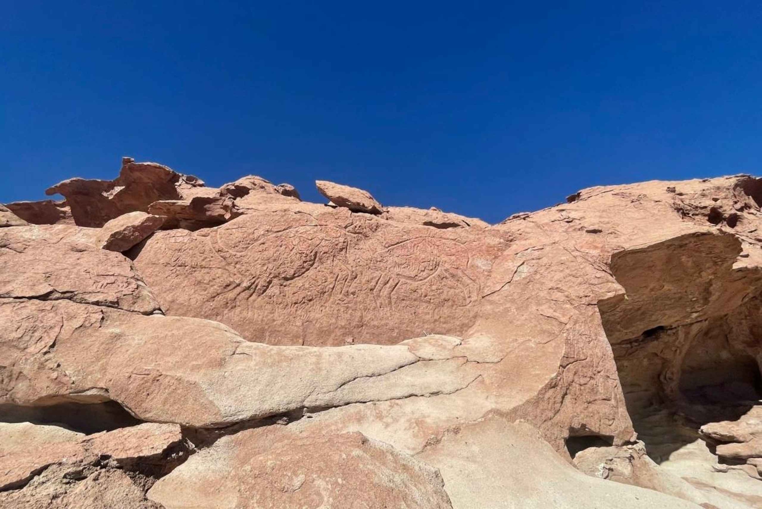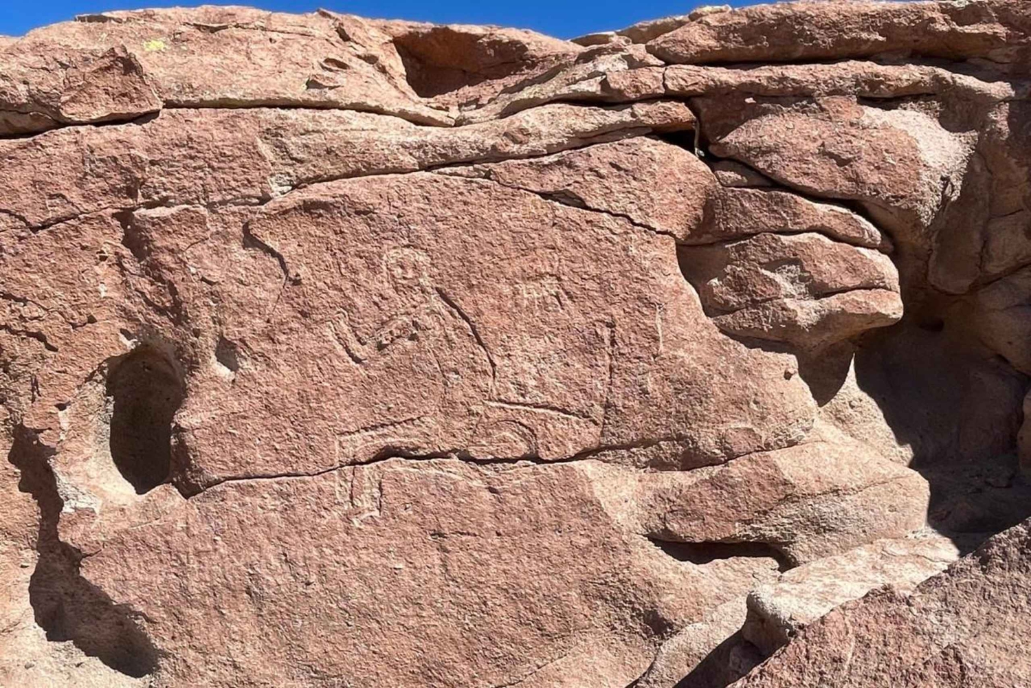 Il nostro viaggio inizia nella città di San Pedro de Atacama e ci dirigiamo verso ovest per esplorare l'affascinante Rainbow Valley. Per prima cosa, visiteremo la Cordillera de Domeyko, una delle tre catene montuose che formano il paesaggio unico del Cile settentrionale. La nostra prima tappa è a Hierbas Buenas, un piccolo villaggio agricolo noto per i suoi importanti petroglifi storici, tra i più antichi della regione. Qui sarai immerso nella ricca storia degli Atacameños, con antiche incisioni che rivelano gli strati della storia umana incisi nelle rocce.