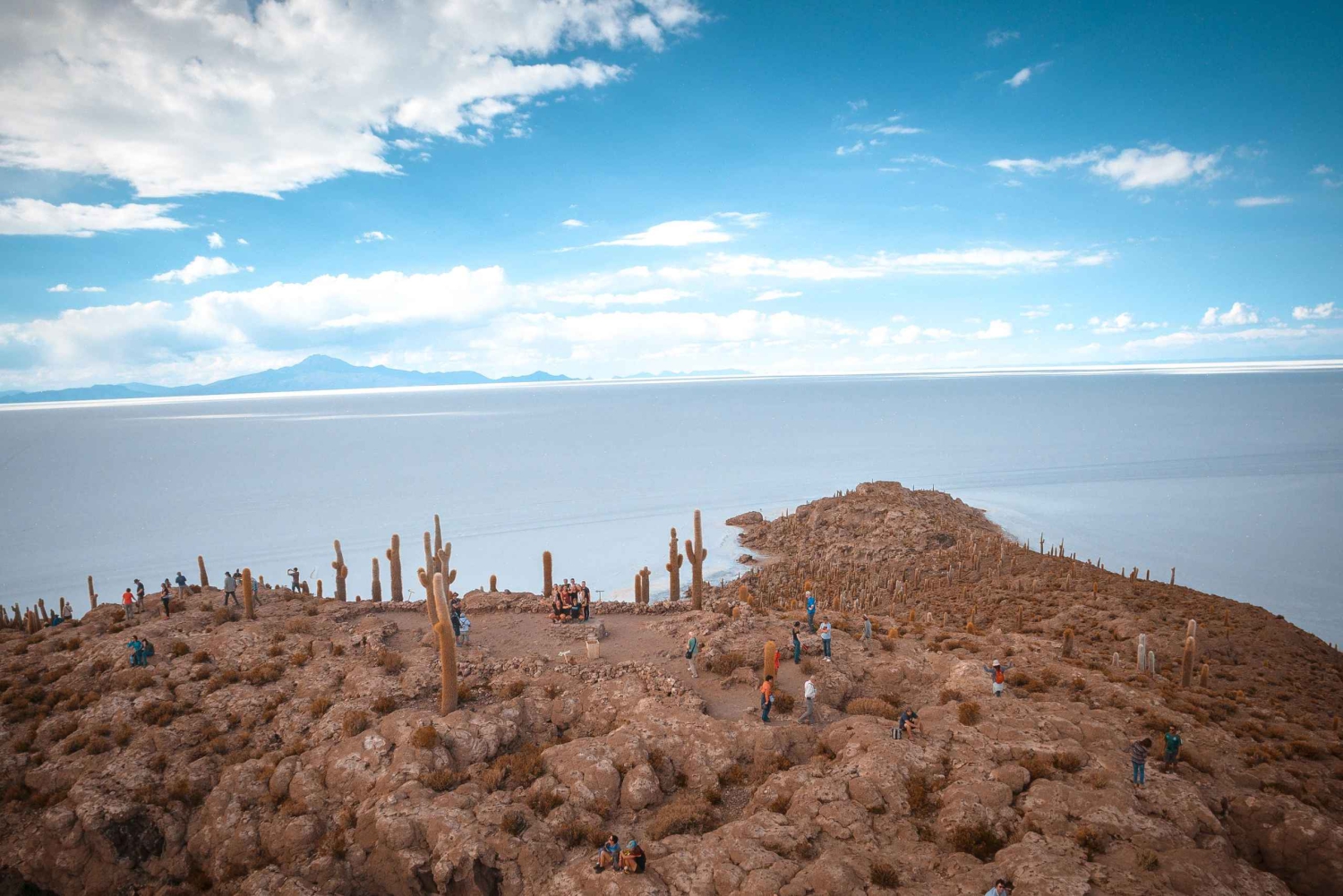 Più tardi, l'immensa Salina di Uyuni, a 3.663 m s.l.m., che si estende su una superficie di 12.000 km². Durante il viaggio, visita: gli occhi di sale, l'Hotel-Museo del Sale (costruito interamente con blocchi di sale), il Monumento al Dakar, le bandiere del mondo e, infine, arrivo all'isola di Incahuasi per ammirare il bellissimo panorama e i cactus giganti.