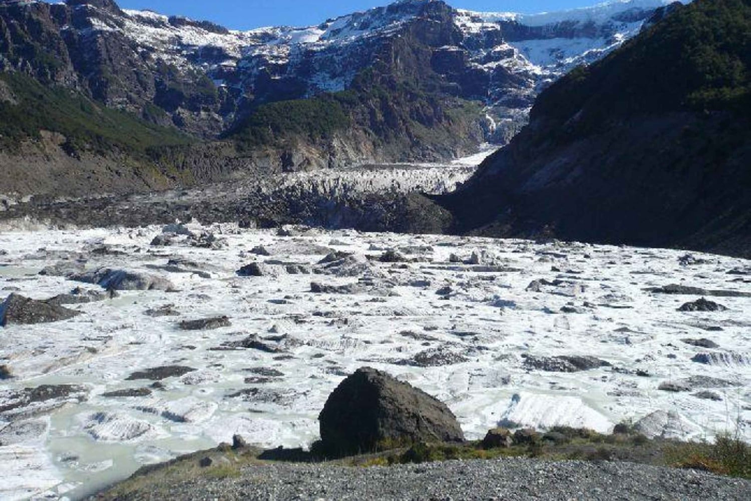 De berg Tronador, 3.478 meter hoog, vormt een natuurlijke grens tussen Chili en Argentinië. Vanaf het uitkijkpunt aan de voet kun je de ongelooflijke gletsjer zien die de Manso rivier voedt.