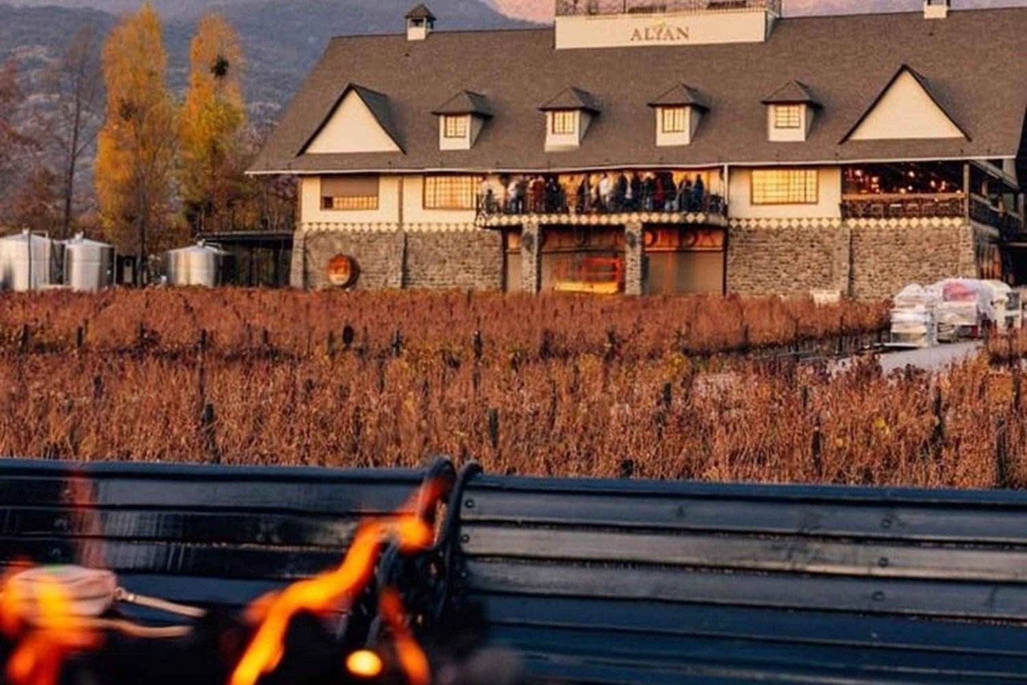 Je onvergetelijke ervaring begint met een warm welkom bij Alyan Family Wines, een boetiekwijnmakerij in familiebezit in de pittoreske Maipo-vallei. Terwijl de zon begint te dalen, word je meegenomen op een charmante wijngaardwandeling waar de geschiedenis, duurzaamheidspraktijken en familiefilosofie achter Alyan tot leven komen. Je gids neemt je mee naar verschillende schilderachtige plekjes op het terrein, waar je bij elke stop een andere handgemaakte wijn kunt proeven, perfect afgestemd op de veranderende sfeer van de zonsondergang.