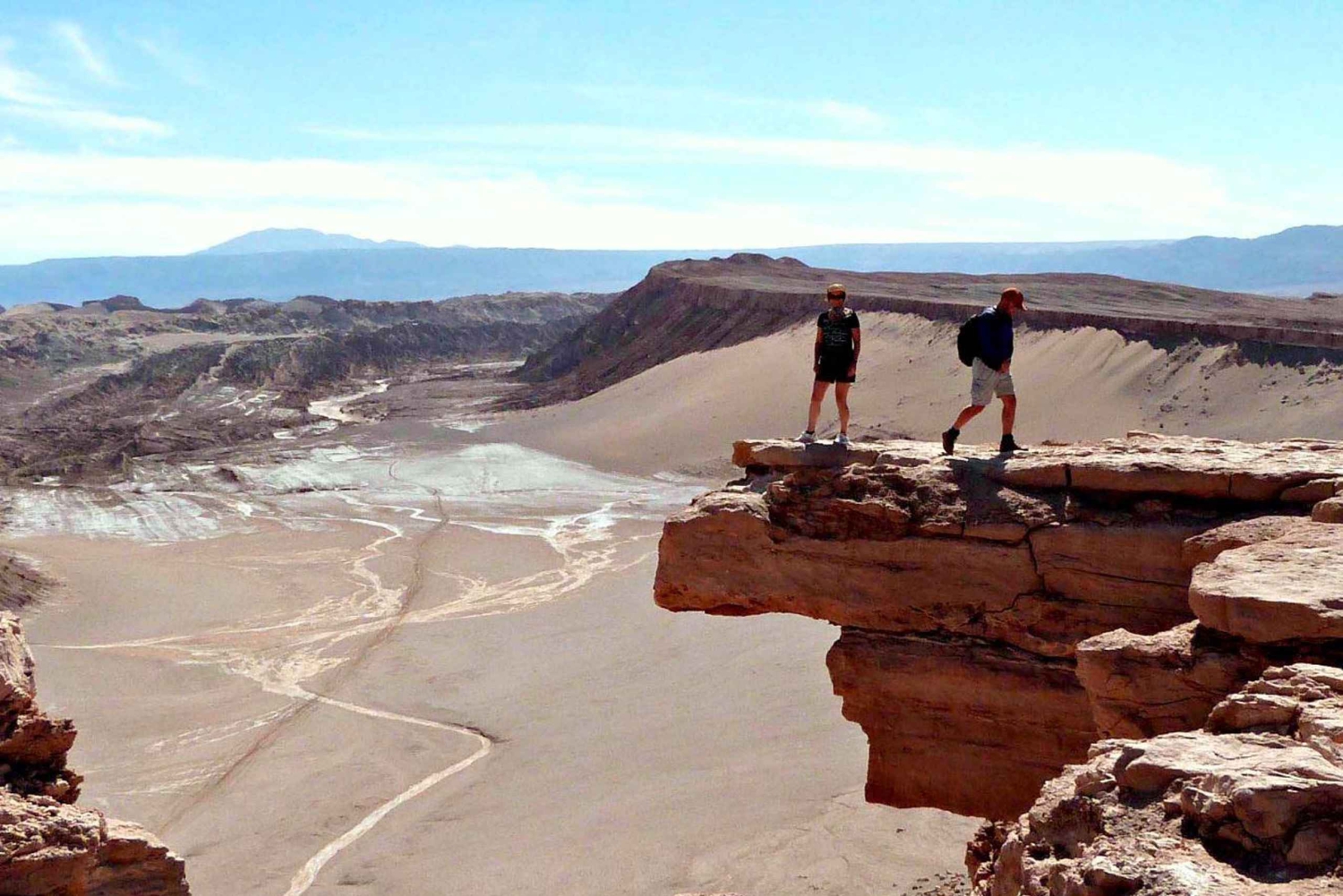 Begin je reis op Domingo Atienza met Calle Caracoles in San Pedro de Atacama. Van daaruit gaan we naar de prachtige Valle de la Luna, een landschap van zout, klei en mineralen dat in miljoenen jaren is gevormd. Begin met een wandeling naar het Grote Duin, waar je de indrukwekkende lagen van de vorming kunt zien en kunt genieten van een panoramisch uitzicht op de Cordillera de la Sal, de Cordillera de Domeyko en het Andesgebergte, waaronder de uitgestrekte Salar de Atacama.