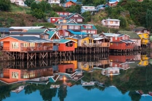 Chiloé Island, Merenregio.Heel dicht bij Puerto Montt, op 200 kilometer afstand, volgend op Nationale Route 5, kun je het Chiloé-eiland betreden. Het verrast met zijn culturele rijkdom, vol mythen en legendes, die de aandacht van de bezoekers trekken vanwege de eenvoud en bijzonderheid van de gebouwen. Zijn huizen op palen en zijn 16 houten kerken zijn erkend als werelderfgoed door UNESCO. Gelegen aan de westkust van Isla Grande, heeft het Chiloé National Park een paleontologische vindplaats gelegen in Playa Rahue met meerdere inheemse boomsoorten zoals de arrayán en de lariks. Wandelen is mogelijk door de verschillende paden van het park om te genieten van zijn endemische flora en fauna. Een van de meest erkende hotels op de Chiloé-eilanden is het Hotel Parque Quilquico, gelegen in het archipel gevormd door het grote eiland en ongeveer 40 kleinere eilanden in de omgeving. Het ligt aan de oevers van het Dalcahue-kanaal en met een prachtig uitzicht op het Quinchao-eiland. De geur van hout, de warmte van het water en het panoramische uitzicht zorgen voor een unieke ervaring. Om te ontspannen, zijn er buiten op het terras van het hotel hot tubs om te baden. Bovendien nodigt het pad naar de kust uit om te wandelen, door bossen van eeuwenoude inheemse bomen, naar het strand en het Pullao-moeras te bereiken. Sommige van de bekende gerechten van de Chiloé-gastronomie zijn de Chapalele, gemaakt van aardappel en bloem, en de Curanto, een traditionele kookmethode voor vlees en zeevruchten met behulp van hete stenen die in de grond zijn begraven. Vanuit grote steden zoals Castro en Dalcahue worden gastronomische rondleidingen aangeboden om de gewassen van de velden te leren kennen en om de bekende curanto te koken.