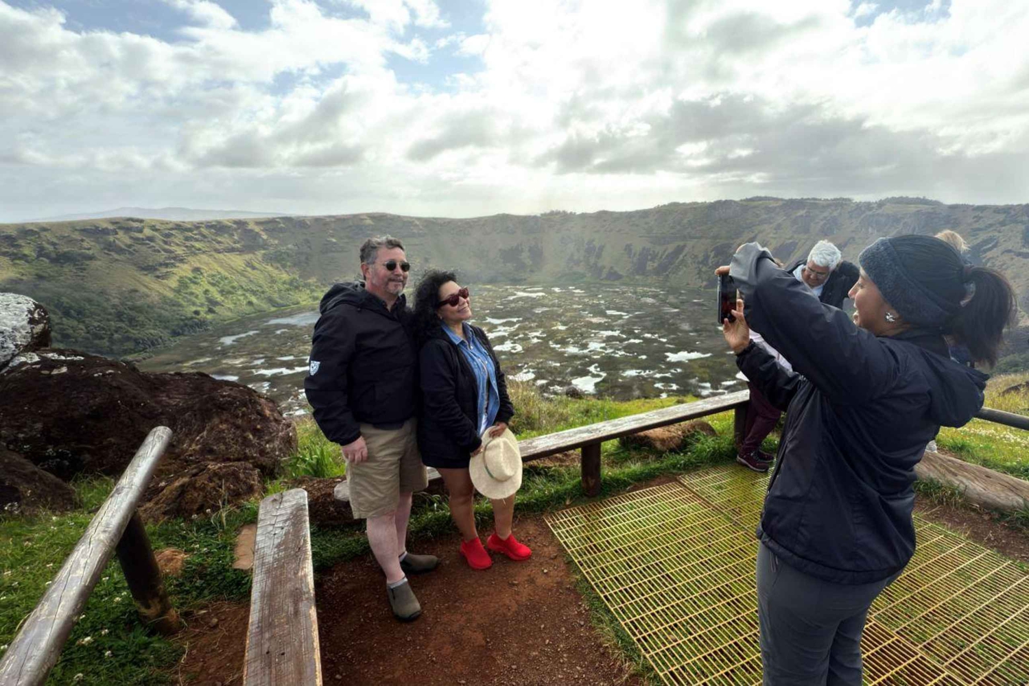 Oppdag Påskeøyas seremonielle hjerte på denne halvdagsomvisningen. En reise gjennom historie, kultur og fantastiske landskap. Start på Orongo, fortsett til Ranu Kau og avslutt på Ahu Vinapu.