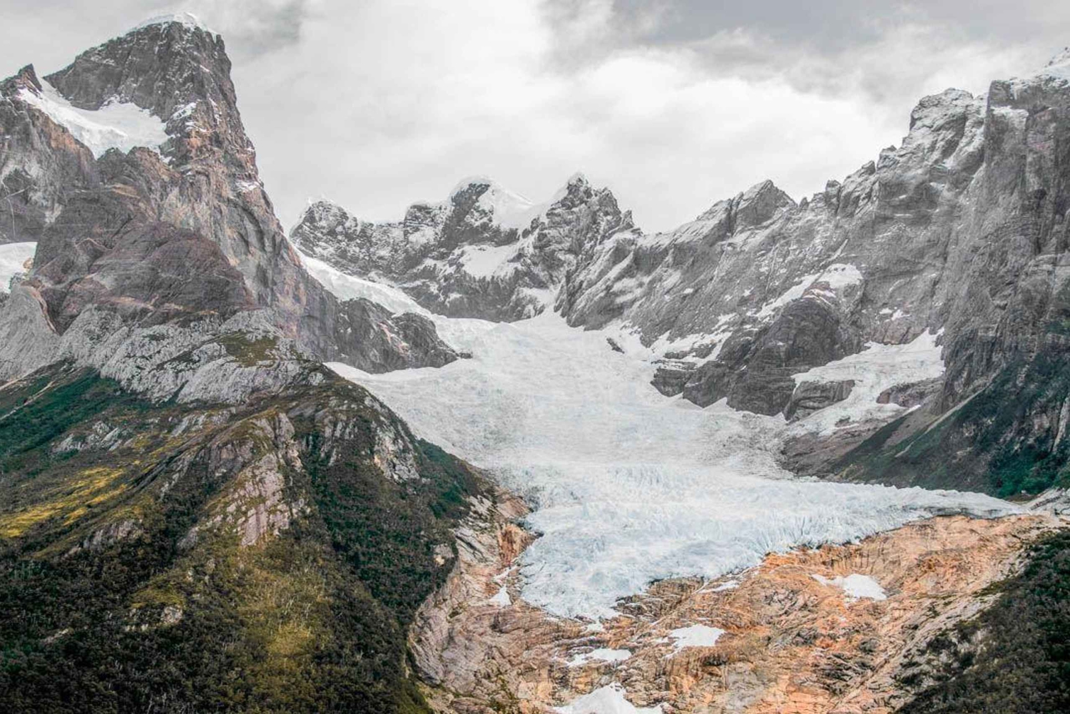 Vi begynner eventyret vårt i Puerto Natales, hvor vi registrerer oss før vi går om bord i katamaranen. Turen begynner langs Señoret-kanalen, med utsikt til det nasjonale historiske monumentet Frigorífico Bories, et byggverk fra 1913 som kjennetegnes av sin post-viktorianske arkitektur i engelsk stil. Ferden fortsetter til vi når hoveddestinasjonen vår, Balmaceda-fjellet, hvor du kan se den praktfulle Balmaceda-breen. Deretter fortsetter vi seilingen til vi kommer til Bernardo O'Higgins nasjonalpark, der vi går i land. En ca. 1 km lang sti fører oss til foten av Serrano-breen, gjennom Témpanos-lagunen og gjennom en urskog av coigües, ñirres og ciruelillos. Her kan vi ta bilder og beundre den enorme ismassen. Om bord på båten nyter vi en whisky mens vi betrakter den imponerende panoramautsikten over Serrano-breen. Før vi returnerer til Puerto Natales, stopper vi på Estancia Perales (eller lignende), hvor vi blir ønsket velkommen med en tradisjonell magellansk grillfest.
