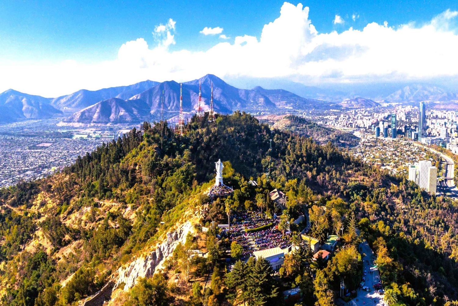 Besøk til «Pueblito de los Dominicos» • Kjøretur gjennom distriktene Vitacura og Las Condes (panoramautsikt) • Besøk til Cerro Santa Lucía • Klimaanlegg i kjøretøyet. • Wi-Fi om bord • Flaskevann [500 ml/16,9 fl. oz.]
