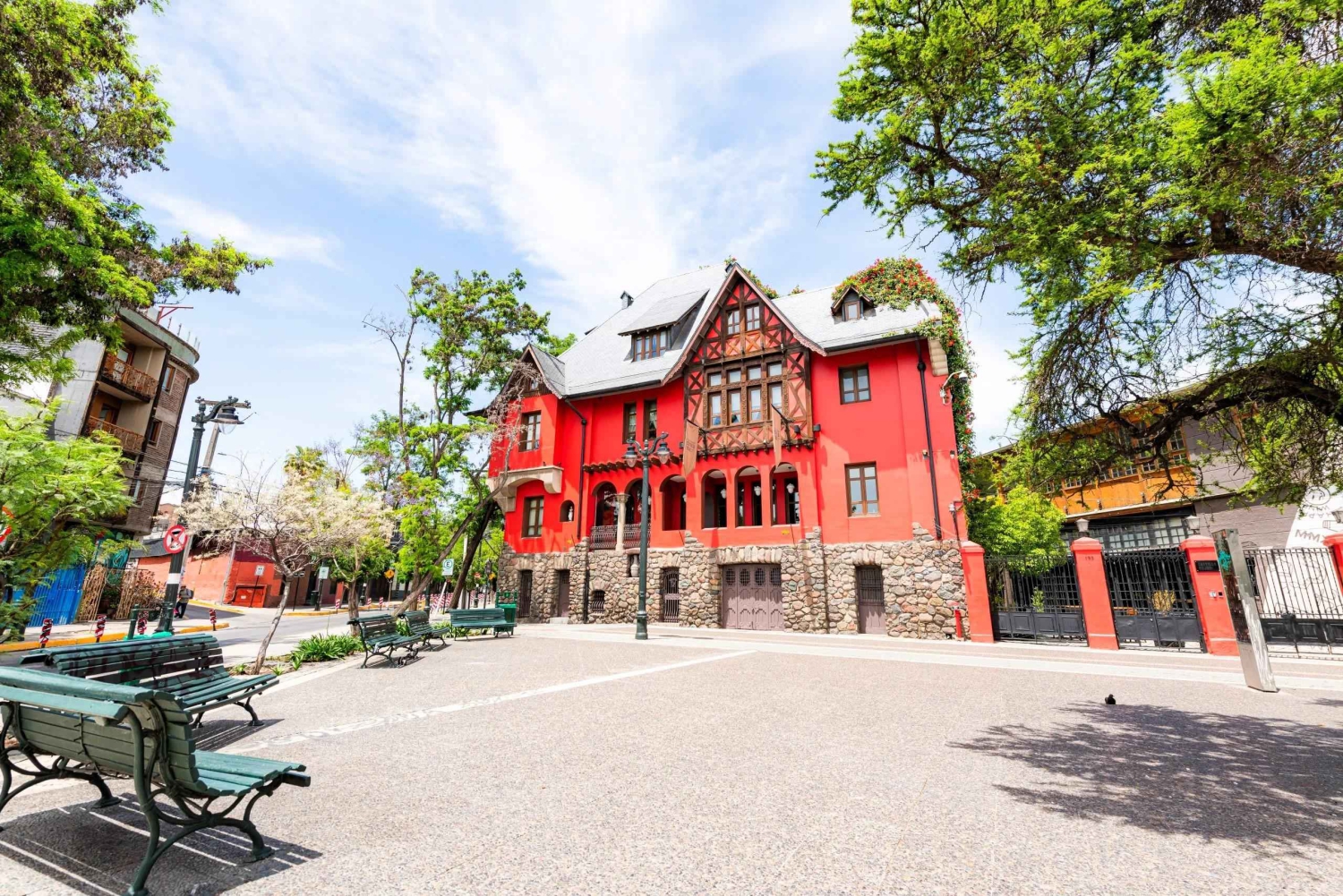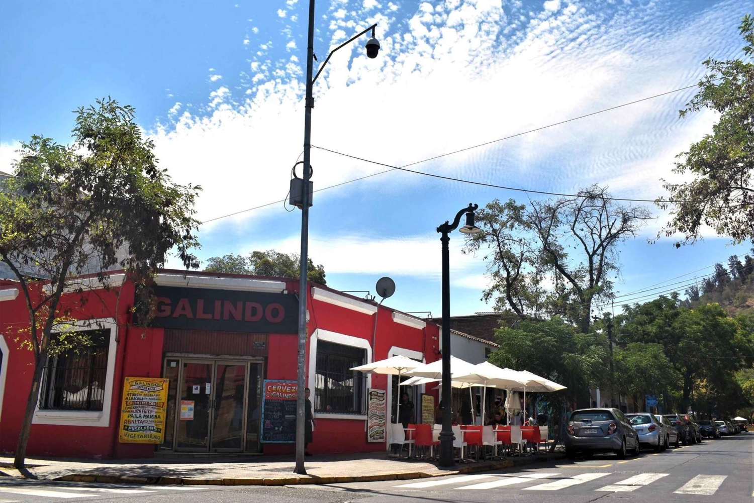 Etter å ha sugd inn den livlige energien på Plaza de Armas, hvor Santiagos koloniale fortid møter den travle nutiden, er det på tide å lade batteriene med autentisk chilensk mat. Ikke langt unna ligger Galindo Restaurant, et populært sted kjent for sine store porsjoner, tradisjonelle retter som pastel de choclo (maiskasserolle) eller cazuela (kjøtt- og grønnsaksgryte) og den livlige, hyggelige atmosfæren. Ta en pause her i 1 time og 10 minutter for å nyte en rolig lunsj, kanskje sammen med et glass chilensk vin eller en forfriskende mote con huesillo (en søt drikke med fersken og bygg). Til slutt kan du besøke «La Chascona», den tidligere boligen til nobelprisvinneren Pablo Neruda, som nå er et husmuseum. Navnet «La Chascona» – eller «Kvinnen med det rufsete håret» – kommer fra Nerudas tredje kone, Matilde Urrutia, som var kjent for sitt røde, bølgete hår. Det ombygde museet huser i dag en sjelden samling av Nerudas personlige eiendeler, blant annet et portrett av Nerudas tredje kone malt av Diego Rivera.