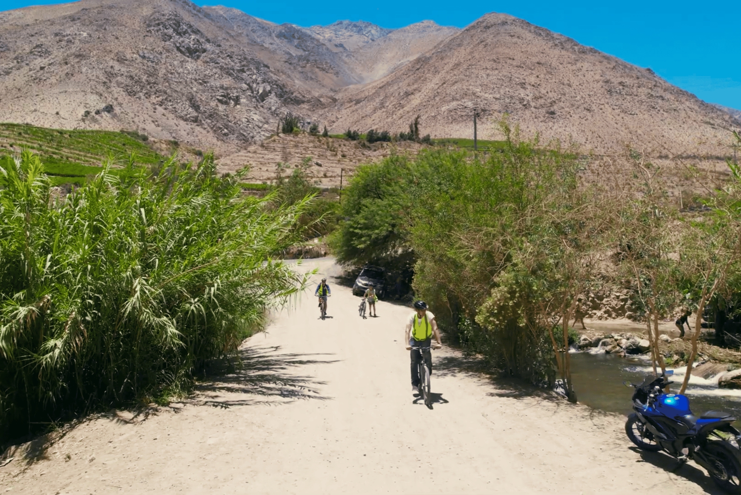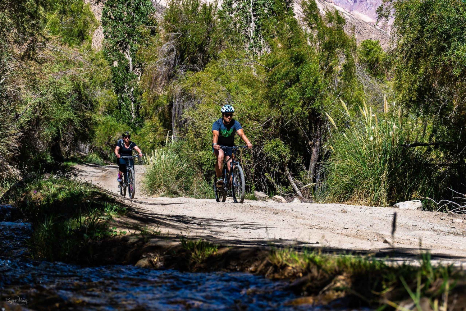 Zabierzemy Cię pojazdem do ostatniego miasta w dolinie Elqui. Podczas tej wycieczki przewodnik opowie wszystkie historie i wskazania miejsc, które można odwiedzić na trasie. W najwyższym punkcie zostaną dostarczone rowery, sprzęt i wskazówki dotyczące bezpieczeństwa, abyś mógł samodzielnie odbyć podróż powrotną pojedynczą trasą o długości 17 km. Schodząc w dół można swobodnie zwiedzać miejsca wskazane wcześniej przez przewodnika.