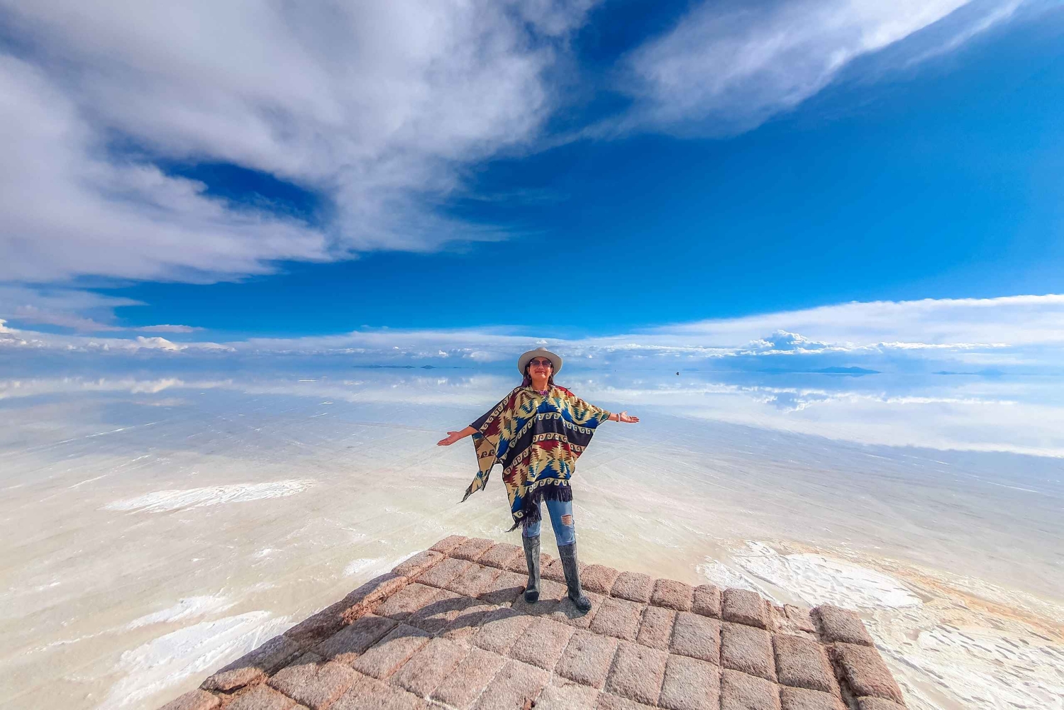 Następnie odwiedź słone równiny Uyuni: * Oczy ze słoną wodą, * Hotel w całości wykonany z soli, który obecnie służy jako muzeum, * Flagi świata (gdzie możesz przynieść swoje i umieścić tam za darmo) oraz Pomnik wyścigów Dakar .