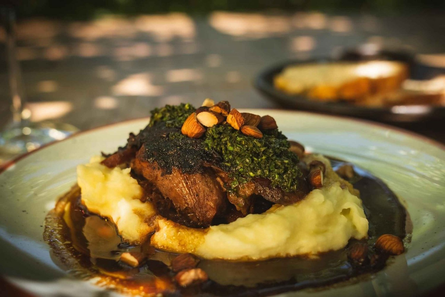 Almoço delicioso com culinária local combinada com vinhos (3 pratos + harmonização de vinhos)