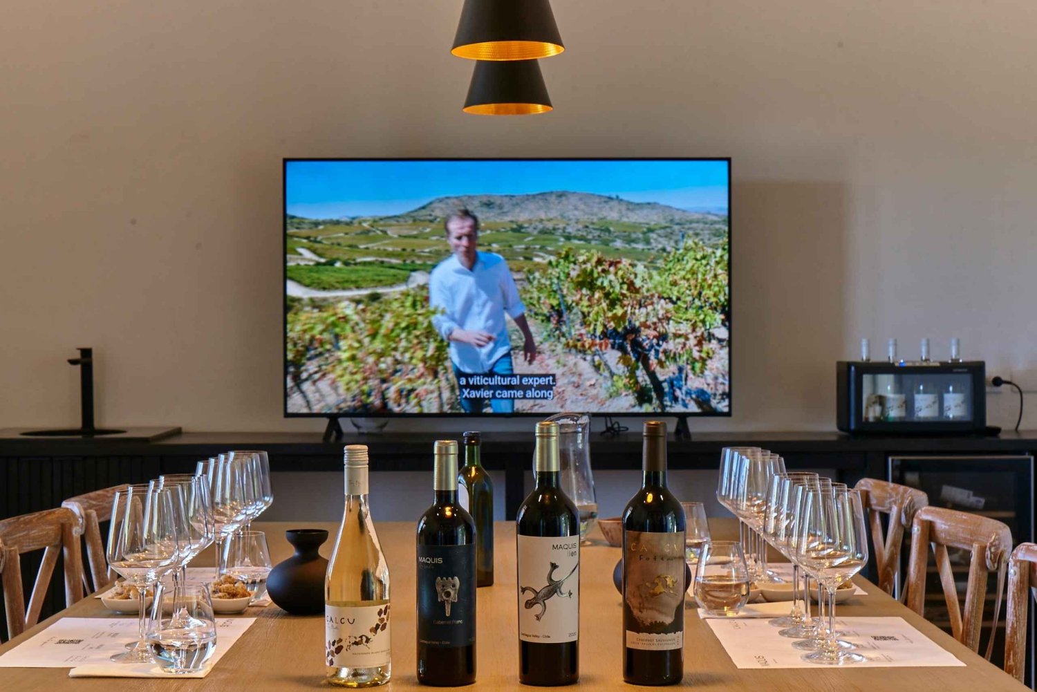 Depois, faz uma viagem virtual pelos vinhedos de Calcu na casa de turismo. Termina a tua experiência com uma degustação de vinhos emblemáticos tanto de Maquis como de Calcu, incluindo um refrescante Rosé.