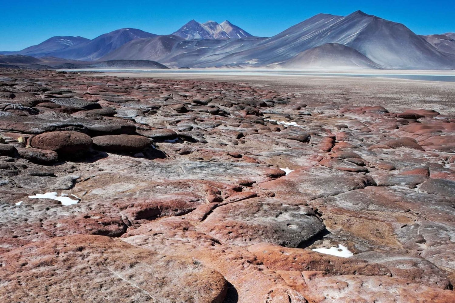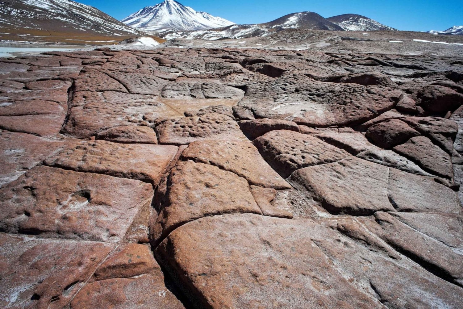 Полюбуйтесь красными образованиями Пьедрас-Рохас, исследуйте сюрреалистические пейзажи и насладитесь закатом в пустыне Атакама. Впечатляющее визуальное впечатление!